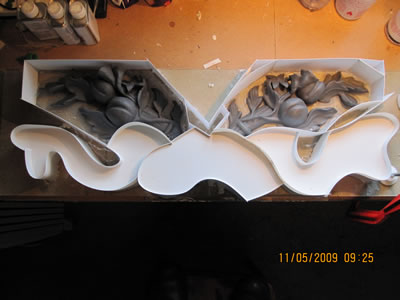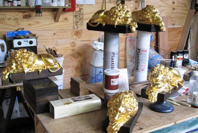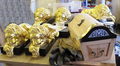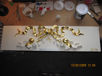 The work we produce is often gilded, and the examples here show water and oil based gilding in 22ct gold employing the traditional methods of application.